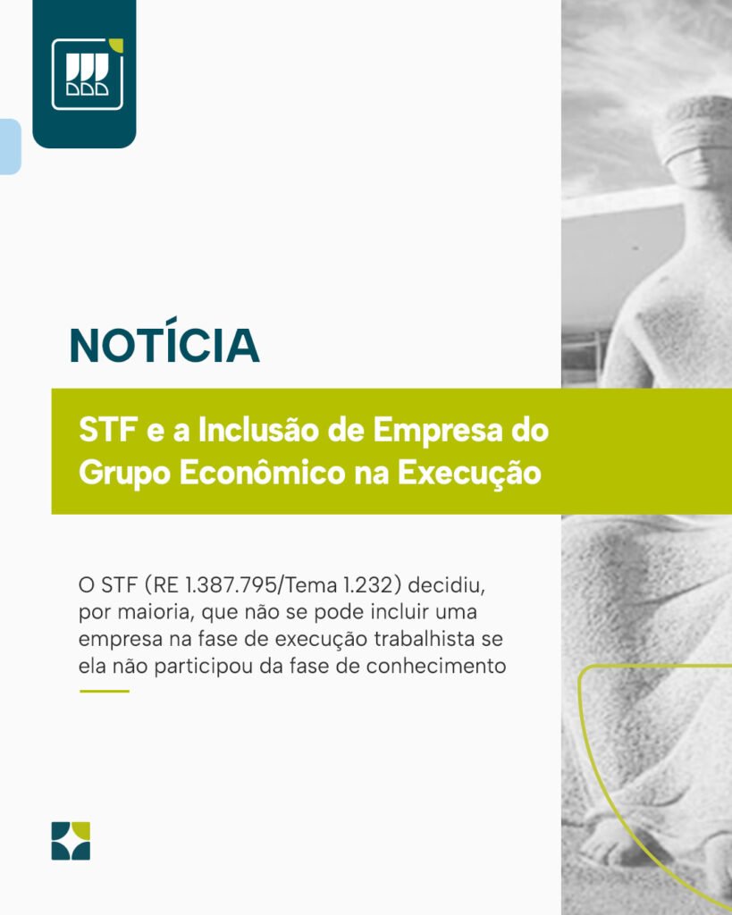 O julgamento do RE 1.387.795, que deu origem ao Tema 1.232, obteve maioria de seis ministros no sentido de que não é possível incluir uma empresa na fase de execução trabalhista se ela não tiver participado da fase de conhecimento. A tese majoritária visa garantir os princípios constitucionais do contraditório, da ampla defesa e do […]